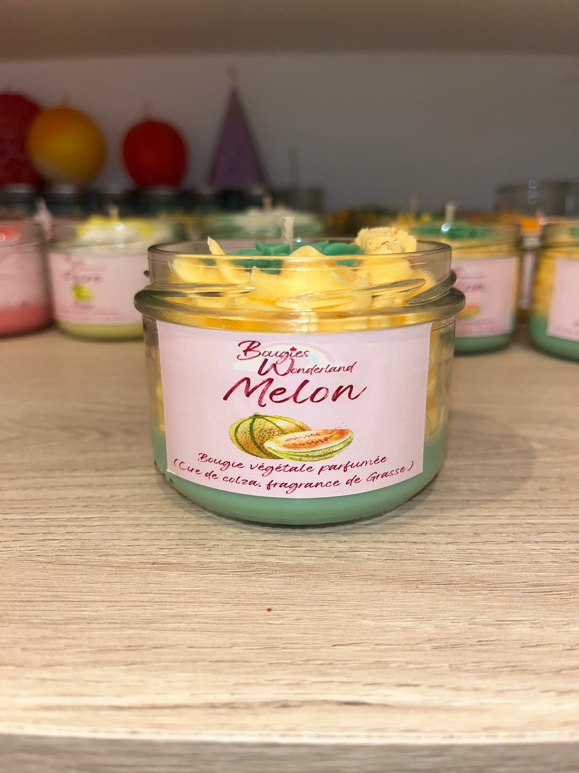 Découvrez la Bougie Chantilly senteur Melon, fabriquée à la main avec de la Cire de colza et un délicieux parfum de Grasse.