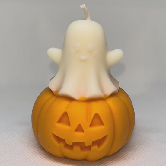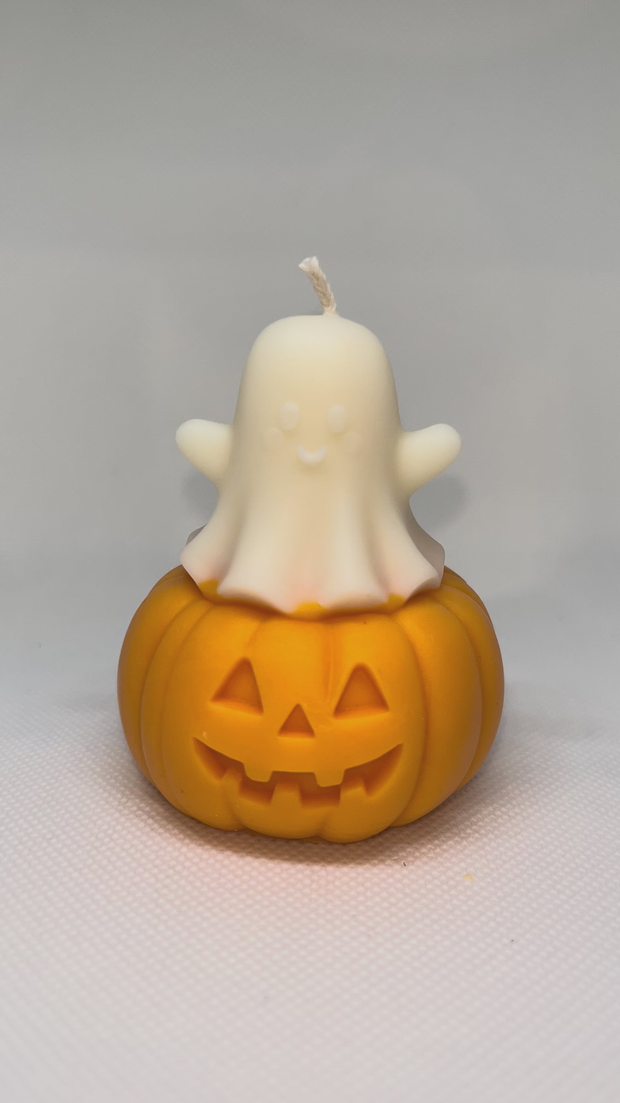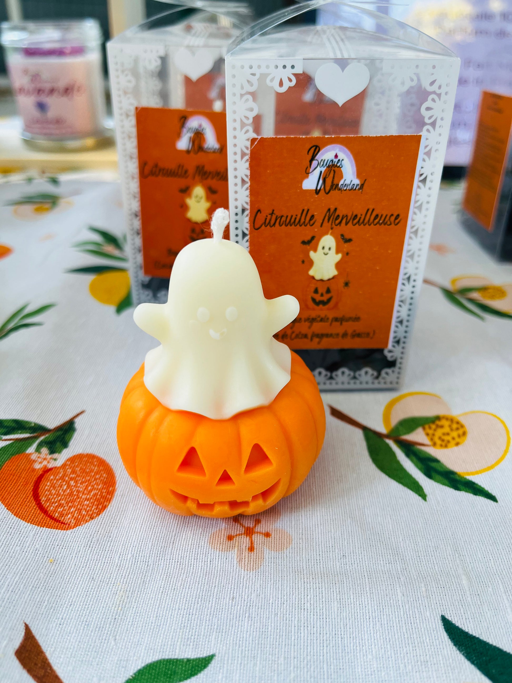 Plongez dans l’univers magique d’Halloween avec notre bougie Fantôme Citrouille 🎃👻.